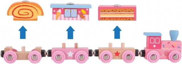 L’Express sucré de la marque Bigjigs Rail est un premier train idéal ou un excellent complément à une voie existante. Grâce aux aimants universels, l’assemblage est facile, et la fabrication soignée en bois et en métal résiste au jeu quotidien. Les rails bonus inclus permettent d’allonger immédiatement la voie.