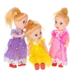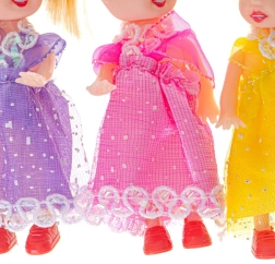 Nous vous présentons un set de trois magnifiques poupées, idéal pour s’amuser dans une maison de poupée ! Elles mesurent 10 cm et conviennent à toutes les pièces de la maison. Grâce à leurs robes colorées — rose, jaune et violet, avec des chaussures rouges — chaque espace paraît fait sur mesure pour elles. Ces poupées offrent une occasion parfaite de développer la créativité des enfants, encouragent la pensée créative et aident à développer la motricité fine.