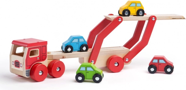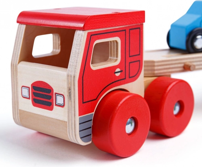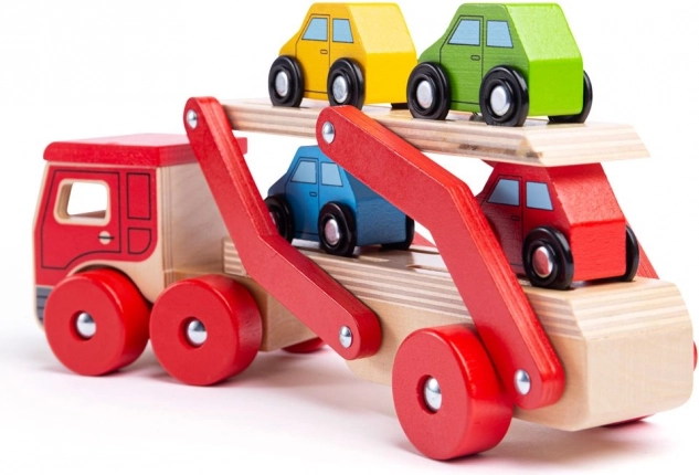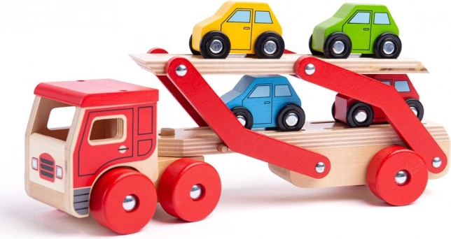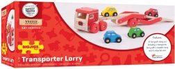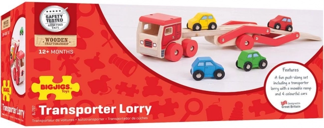 Bigjigs Toys offre aux enfants un divertissement sans fin avec ce camion en bois avec voitures, qui procure non seulement des heures de jeu, mais favorise aussi le développement de la coordination œil-main. La partie supérieure de la remorque se baisse facilement, permettant une montée et une descente aisées des petits véhicules.