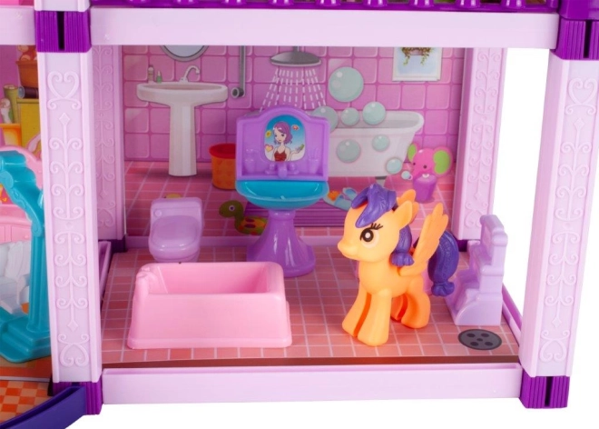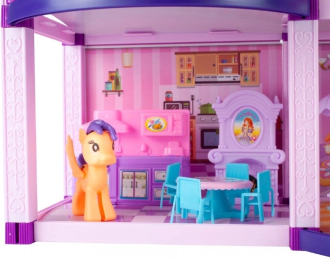 Une maison de poupées unique fabriquée en plastique, idéale pour de nombreuses heures de jeu pour chaque fille et ses amies. La maison est parfaite pour les poneys et le chien inclus dans l’ensemble, ainsi que pour les poupées. Chacun se sentira comme dans un palais dans cette résidence. La grande maison comprend également de plus grands meubles, ce qui rend le jeu plus facile et plus réaliste. Les intérieurs reflètent parfaitement une vraie maison.
