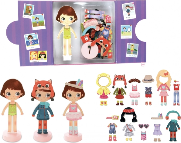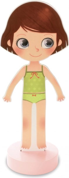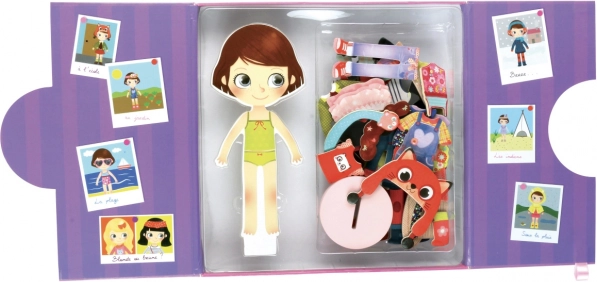 La poupée d’habillage magnétique Chloe est le jouet idéal pour les enfants qui aiment la mode et le style. Son socle en bois stable assure un habillage confortable et une belle présentation des tenues. Grâce au riche ensemble d’éléments magnétiques, on peut composer d’innombrables looks – des robes et manteaux jusqu’aux bonnets et chaussures.