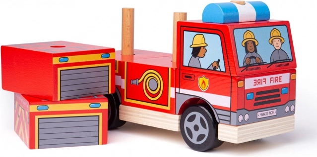 Ce jouet astucieux associe amusement et apprentissage : les enfants empilent les pièces sur des tiges en bois, entraînent leurs capacités de coordination, la reconnaissance des formes et des couleurs, puis se lancent dans une histoire d’action avec le camion de pompiers terminé. Le bois robuste, les bords lisses et les couleurs marquées assurent un jeu sûr et attrayant.