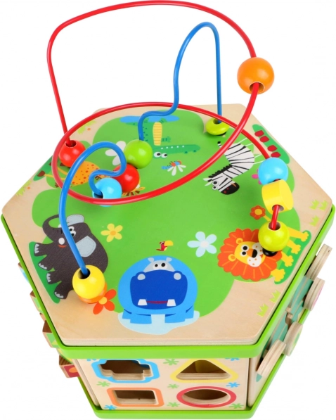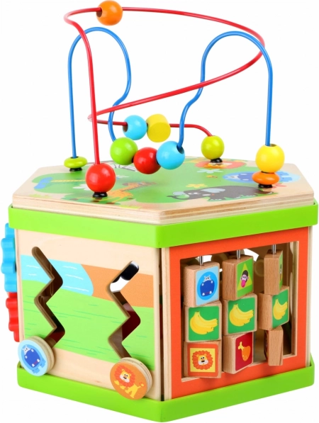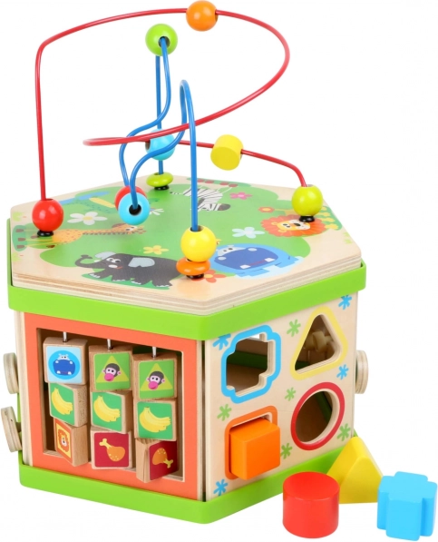 Nous vous présentons la grande boîte à motricité Safari Small Foot, qui révolutionne le jeu et l’apprentissage des enfants ! Avec ce cube solide en bois, orné d’adorables animaux de safari, votre enfant ouvre la porte d’un monde plein de découvertes. Ce produit offre en effet jusqu’à sept faces de jeu riches en activités variées.