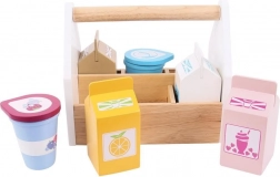 - Contenu du set : 4 cartons de boissons, yaourt, crème, caisse en bois avec poignée