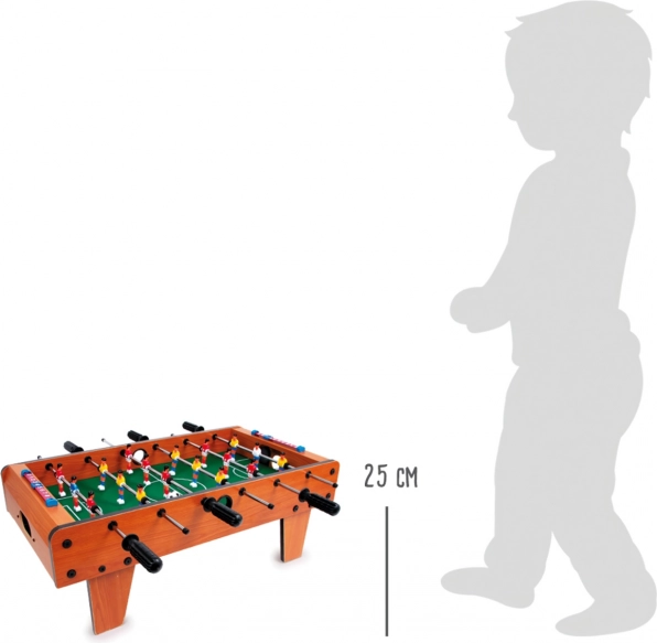 Le grand baby-foot de table small foot est un jeu familial idéal qui se pose facilement sur n’importe quelle table. Grâce à ses dimensions compactes et à sa fabrication robuste en bois verni, métal et plastique résistant, il est prêt pour des matchs quotidiens. Le terrain vert de 60 × 34 cm assure un jeu fluide et une manipulation confortable des joueurs.