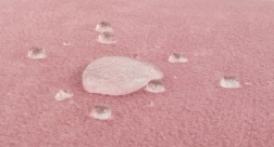 Le matériau CLEANABOO, au toucher velouté, n’absorbe pas immédiatement les liquides : les boissons renversées restent en gouttes et s’essuient facilement.