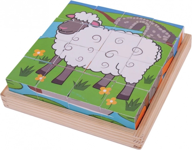 Les cubes illustrés aux motifs de la ferme raviront les petits bâtisseurs et les amoureux des animaux. À partir de seize cubes en bois solides, les enfants composent progressivement six scènes différentes : il suffit de faire pivoter correctement chaque cube et de trouver les pièces qui vont ensemble. Le jeu stimule de façon ludique la coordination œil-main, la logique et la patience.