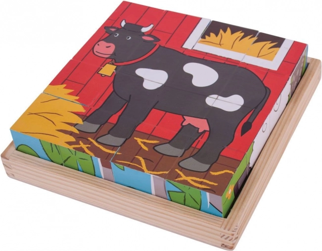 Découvrez un puzzle en bois ingénieusement conçu où 16 cubes en bois composent 6 images de la ferme. Les enfants s’exercent à assembler, aux couleurs et aux formes, tout en développant leur motricité fine et leur concentration. Grâce à ses dimensions compactes 18 × 18 × 4,2 cm, le jouet est idéal à la maison comme en voyage. Fabriqué en bois de qualité issu de sources responsables et conforme aux normes de sécurité européennes.