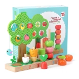 La base en bois numérotée de 1 à 5 apprend aux enfants à compter et à comparer les quantités. Empiler les légumes et les formes stimule la pensée logique et la coordination.
