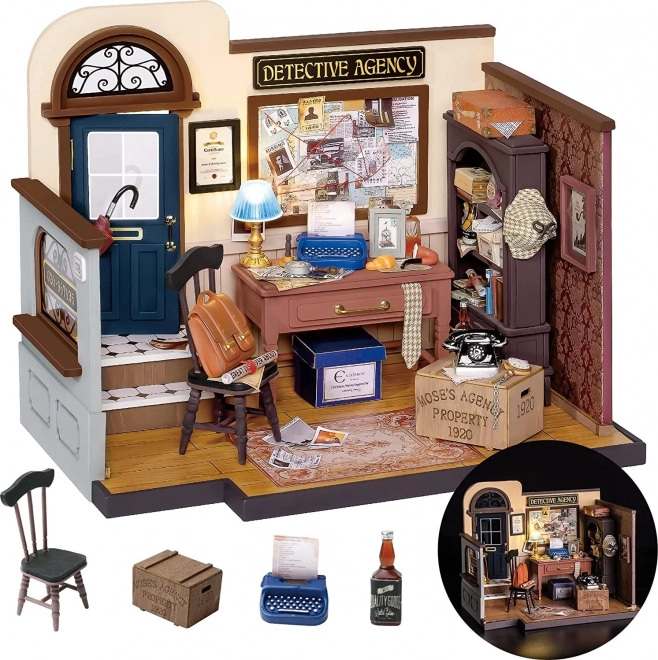 Rolife maison miniature DIY : Bureau de détective de Mose avec éclairage LED