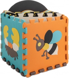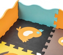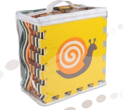 Ce grand tapis en mousse est composé de 25 éléments (9 pièces principales avec animaux amovibles et 16 cadres de bord). Grâce à sa structure de surface plus marquée et à ses couleurs contrastées, il stimule naturellement la vue et le toucher. La mousse EVA souple amortit les chutes lors des premiers pas et protège du froid du sol.