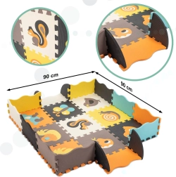 Le tapis se monte facilement en surface de 114 × 114 cm ou en petit parc de 90 × 90 × 16 cm. Les formes amovibles fonctionnent comme un trieur : les enfants les remettent dans les ouvertures correspondantes, entraînent leur motricité fine, leur logique et leur créativité. Les pièces sont imperméables et faciles à nettoyer avec un chiffon humide, ce qui les rend idéales pour la chambre d’enfant comme pour la salle de jeux.