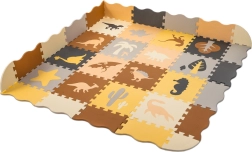 Le tapis peut être utilisé comme une grande aire de jeu de 143 × 143 cm ou assemblé en parc de 113 × 113 × 16 cm. La mousse EVA souple amortit les chocs, isole du froid et ne glisse pas. Le matériau est facile à nettoyer – il suffit d’essuyer avec un chiffon humide. La palette neutre élégante s’accorde avec un intérieur moderne et peut remplacer un tapis dans la chambre d’enfant.