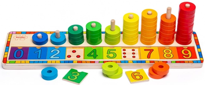 Les séries numériques 0–9 et les anneaux à empiler guident naturellement les enfants vers la compréhension des quantités, de l’ordre et des bases du calcul.