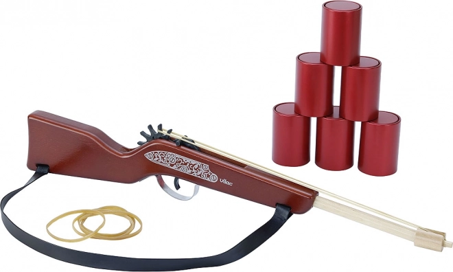 Fusil en bois, 20 élastiques, 6 mini boîtes