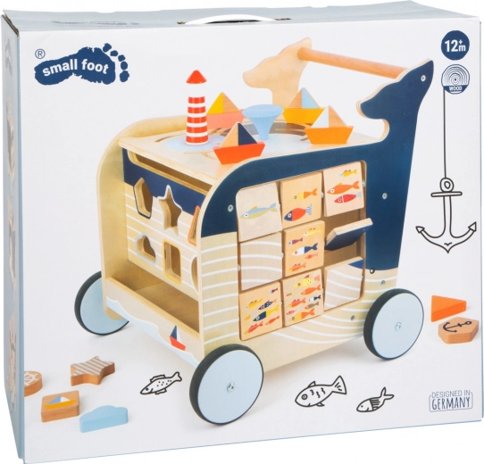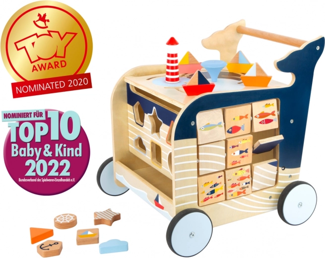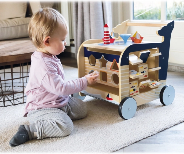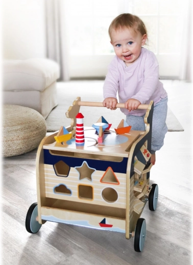 Partez à l’exploration avec ce chariot de marche en bois en forme de baleine. Ce chariot aide non seulement les enfants à faire leurs premiers pas, mais propose aussi diverses activités interactives qui encouragent le développement moteur.