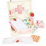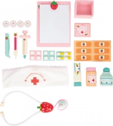 Cette mallette de docteur en bois de qualité Small Foot Isabel est idéale pour les jeux de rôle. Le set comprend 24 accessoires, dont un bandeau textile avec croix rouge et des instruments médicaux colorés au motif fraise, pour ravir chaque enfant.