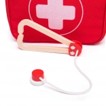 Le set est fabriqué avec des matériaux provenant de sources responsables et conforme aux normes de sécurité européennes actuelles. Grâce aux pièces en bois, aux textiles doux et aux bords lisses, le jeu est sûr et agréable. Cadeau idéal pour les petits docteurs dès 3 ans.