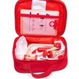 Mallette de docteur portable pour petits médecins, contenant 10 instruments en bois et en textile, soigneusement conçus. Encourage le jeu créatif et imaginatif, apprend la prise en charge et l’empathie et, grâce à la pochette pratique zippée, est idéale aussi en voyage. Fabriquée avec des matériaux de qualité et sûrs, recommandée dès 3 ans.