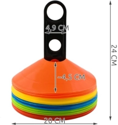 Le set de cônes d’entraînement à profil bas est idéal pour le football, l’athlétisme, le fitness et l’éducation physique. Cinq couleurs intenses (jaune, orange, rouge, vert, bleu) permettent de délimiter clairement les zones, parcours et ateliers, améliorant la sécurité et la lisibilité de l’entraînement.