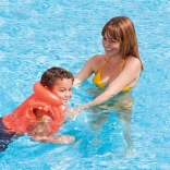 Offrez à votre enfant un soutien fiable pour ses premiers mouvements de nage. Ce gilet de natation gonflable pour enfants, en vinyle résistant, allie haute sécurité et confort : la construction à trois chambres avec chambres indépendantes et valves anti-retour garantit une flottabilité stable, tandis que le col doux soutient la tête et la nuque.