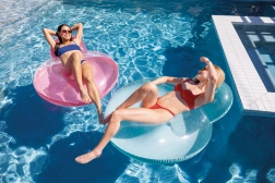Profitez de moments de détente décontractés avec nos cercles gonflables avec dossier, disponibles en orange et turquoise.