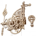 Ugears Aero est une horloge murale mécanique en contreplaqué de qualité, à assembler soi-même sans colle. La vue fascinante sur le mécanisme d’horlogerie apparent avec pendule et poids offre une expérience unique d’ingénierie de précision. Vous lisez l’heure sur une paire de cadrans tournant dans le sens antihoraire, tandis que le modèle décoratif de ballon à air chaud monte régulièrement et marque chaque heure pleine par une descente.