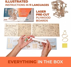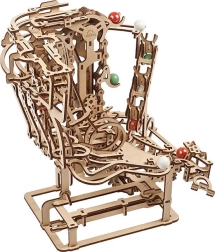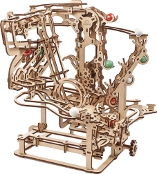 Cette piste de billes sophistiquée en contreplaqué de qualité allie plaisir de modélisme, valeur éducative et spectacle relaxant. L’ascenseur à chaîne à entraînement manuel amène les billes en douceur au point de départ, d’où elles s’élancent sur trois sections distinctes, chacune avec un obstacle principal unique. Le design ouvert met en valeur la mécanique fonctionnelle et les détails raffinés.