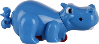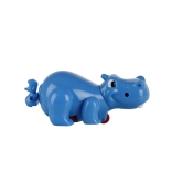 Hippopotame bleu conçu pour être tiré ou poussé, adapté aux enfants et résistant au jeu.