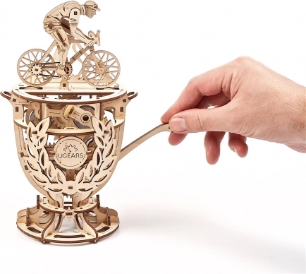 Découvrez la magie de la mécanique avec le modèle en bois UGEARS Cycliste. Ce trophée élégant avec cycliste s’anime d’une pression sur le levier et présente un mécanisme d’engrenages mobile. Grâce à une conception ingénieuse, vous pouvez régler le volant d’inertie avec des pièces et observer une rotation fluide. L’assemblage se fait sans colle, les pièces sont découpées avec précision dans un contreplaqué de qualité et, une fois monté, le modèle est entièrement fonctionnel et décoratif.