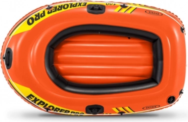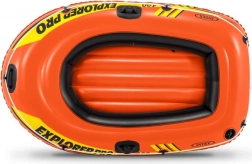 Canot pneumatique pour une personne de dimensions 160 × 94 × 29 cm, avec fond gonflable, corde de sécurité tout autour, supports pour rames, trois chambres à air avec valve double. Kit de réparation inclus dans l’emballage.