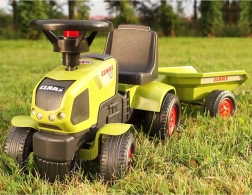 Ce robuste tracteur porteur pour les tout-petits séduit par son look réaliste CLAAS et sa facilité d’utilisation. Grâce à la remorque amovible, les enfants peuvent transporter leurs jouets ou de petits objets de l’atelier ou du jardin, tandis que le volant avec klaxon ajoute encore plus de fun aux jeux de petit fermier.