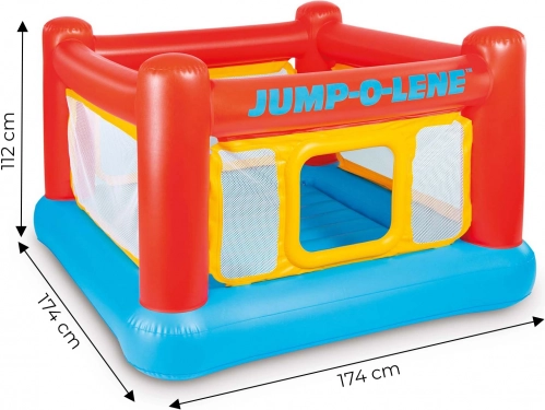 Offrez aux enfants un divertissement sans fin avec le château gonflable INTEX Jump-O-Lene. Cette maisonnette gonflable colorée est idéale pour les enfants à partir de 3 ans et offre un saut en toute sécurité grâce à ses parois en filet, à son matériau résistant et à sa structure stable. Avec des dimensions de 174 × 174 × 112 cm et une capacité de charge jusqu’à 54 kg, il est parfait pour une utilisation à l’intérieur comme à l’extérieur.