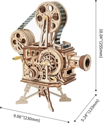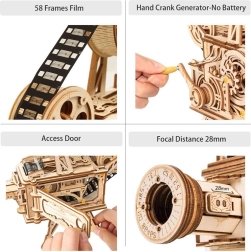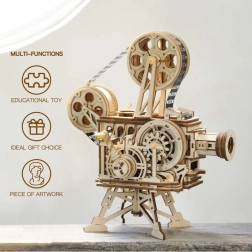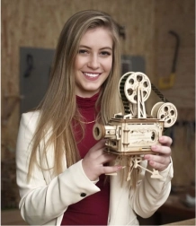 Ce modèle de projecteur en bois au style rétro séduit par ses engrenages élaborés, ses bobines et ses détails authentiques. Assemblez le mécanisme pas à pas, insérez la bande de film fournie et profitez d’un mini-cinéma à la maison. Grâce au générateur manuel, pas besoin de piles – il suffit de tourner la manivelle pour lancer la projection.