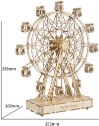 Cette élégante boîte à musique sous forme de puzzle 3D représente fidèlement une grande roue classique et, une fois remontée, joue une mélodie bien connue. Grâce à son mécanisme 18 tons de qualité, le son est clair et agréablement puissant. Le modèle est livré non assemblé et comprend un guide de montage détaillé, pour que même les constructeurs moins expérimentés puissent en profiter.