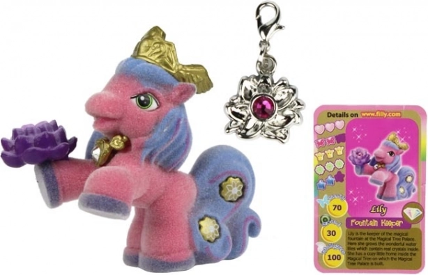 La princesse Jewel, un rare Filly Elf, porte sur son diadème une pierre magique qui change de couleur selon son humeur, rendant ces jouets encore plus uniques. Chaque emballage contient une carte à collectionner et un dépliant d’information.