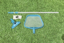 Le kit de nettoyage complet INTEX est la solution idéale pour les piscines domestiques jusqu’à 488 cm de diamètre. L’aspirateur hydraulique raccordé au tuyau d’arrosage crée une pression et collecte efficacement sable, feuilles et dépôts du fond dans le sac fourni, tandis que l’épuisette à maille fine retire facilement les impuretés flottantes de la surface.