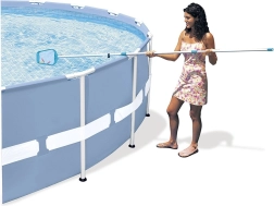 Légère et robuste, la perche assure une portée confortable sur toute la surface de la piscine et un changement d’embouts facile.