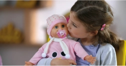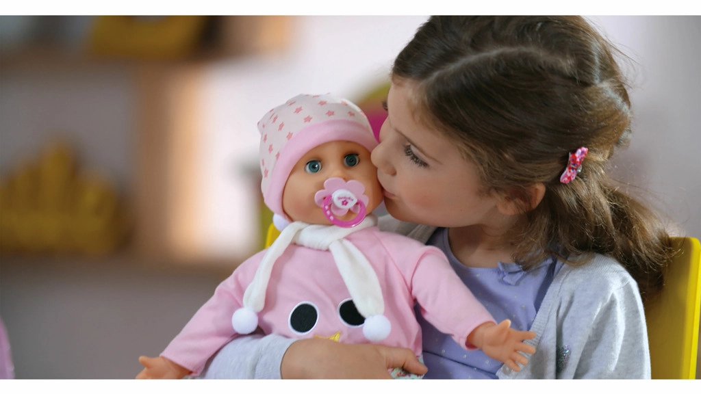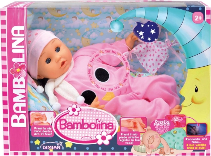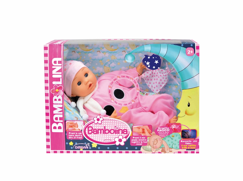 La jolie poupée Bambolina Jasmine sait dire jusqu’à 50 mots tchèques. Après avoir appuyé sur son ventre, Jasmine commence à parler. Viens jouer avec elle, elle te dira par exemple : « Maman, je t’aime ».