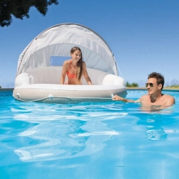 L’îlot gonflable INTEX offre un lieu parfait pour se détendre au bord de l’eau. L’auvent amovible et ajustable procure une ombre agréable lorsque le soleil tape, et vous pouvez l’enlever facilement pour bronzer. La large surface et les dossiers profilés assurent un confort optimal pour de longues heures de repos.