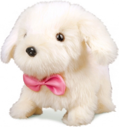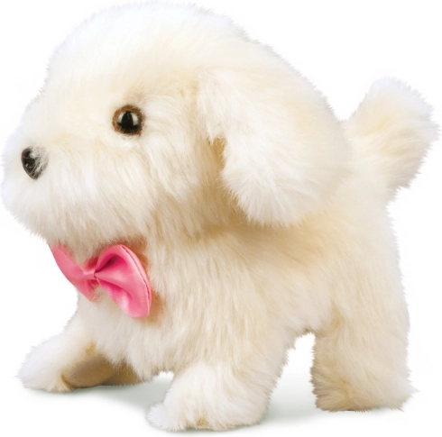 Un chiot avec un flacon interactif qui réagit à l’appui sur le bouton situé sur le dos. Lorsqu’on approche le flacon du museau, grâce à un capteur magnétique, le chiot émet des sons comme s’il buvait.