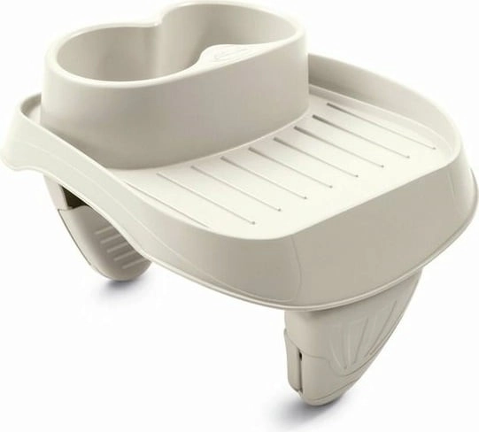 Le porte-boissons double accueille deux bouteilles ou gobelets et offre aussi un petit plateau pour des snacks ou de petits objets à garder à portée de main.