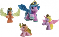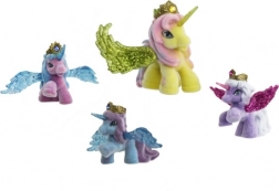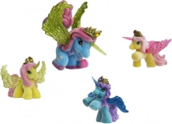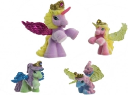 Chaque cheval a des ailes pailletées, une corne magique et une couronne dorée avec un « cristal » coloré – idéal pour les jeux féeriques.