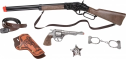 Set de cow-boy – fusil, revolver, menottes et étoile de shérif pour amorces