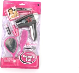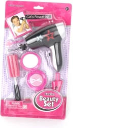 Il comprend un sèche‑cheveux à l’apparence réaliste, une palette de « maquillage », un peigne, un vernis et un rouge à lèvres ou un flacon de parfum – le tout dans des couleurs attrayantes qui invitent au jeu créatif. Favorise les compétences sociales, l’autonomie et l’imagination.