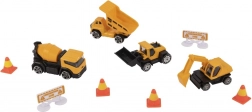 Combinaison de véhicules de construction en plastique jaune et noir tels qu'un camion-benne, un malaxeur, une excavatrice et un chargeur, permettant aux enfants de simuler un environnement de construction réel.