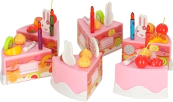 Découvrez la magie d’un anniversaire chaque jour. Le gâteau d’anniversaire rose pour enfants en 6 parts avec l’inscription « Happy Birthday » se démonte et se remonte facilement grâce aux bandes auto-agrippantes. Les petits chefs le décorent selon leur humeur – avec des bougies, des lapins et des fruits colorés – puis le servent dans des assiettes.