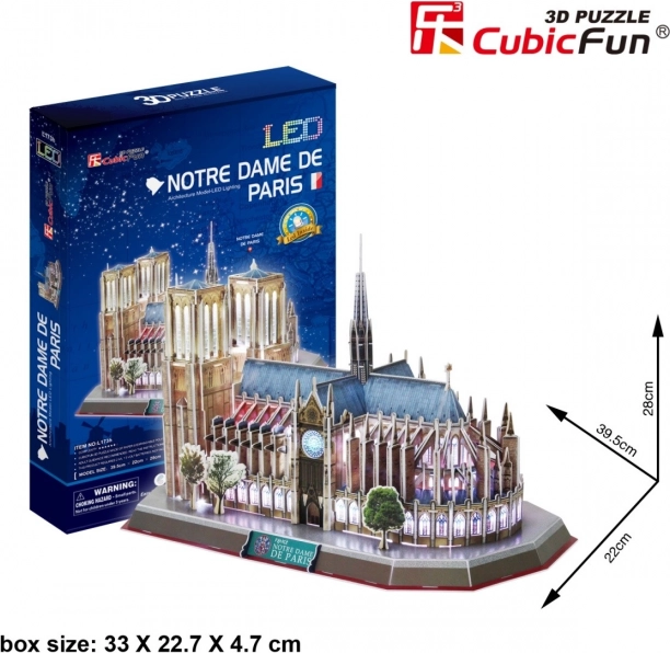 Ce magnifique modèle 3D représente la cathédrale Notre‑Dame de Paris, l’un des plus beaux exemples de l’architecture gothique française. Le montage est un divertissement pour toute la famille, ce qui en fait un excellent élément décoratif pour votre maison ou une chambre d’enfant.