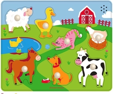 Le puzzle aide à enrichir le vocabulaire – pendant le jeu, les enfants apprennent à nommer les animaux (vache, brebis, cheval, poule, etc.) et à percevoir les couleurs et les formes. La fabrication en bois de qualité de la marque STUDO WOOD est durable et sûre pour les petites mains.