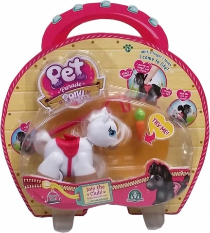 Les poneys de la gamme Pet Parade sont comme vivants. Regardez votre poney s’animer au toucher et bouger adorablement la tête, la queue et les pattes. Fixez la laisse à son museau et partez en promenade – observez comme il remue ses pattes de façon rigolote et cligne des yeux.